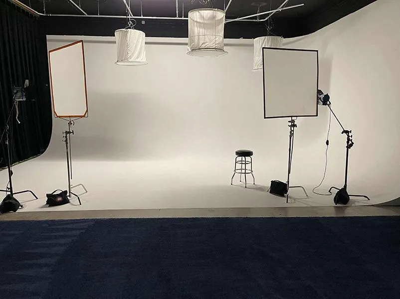 Over 4000+ sqft sound stage is available to rent at hourly, half-day and full-day rates and is equipped with one Green Cycloramic Screen (18ft tallx30ft widex21.5ft deep) and one White Cycloramic Screen (18ft tallx30.5ft widex16ft deep). Your sound stage rental will come with A/C, Electricity and Wifi. In addition to the added spaces of our Conference Room and Make-Up room for use with your clients and/or talent.